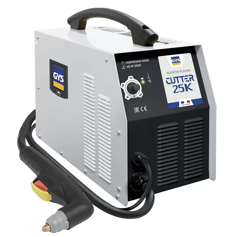 Máy cắt plasma 25A 1 pha thương hiệu GYS của France. Model CUTTER 25K là máy cắt plasma sử dụng công nghệ Inverter và P400 chống quá áp dây dẫn đến 400V.